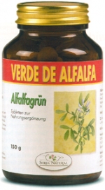 Alfalfa ist ein Nahrungsergänzungsmittel (NEM), das aus dem Presssaft der Luzerne (Medicago sativa, auch Alfalfa-Pflanze, Schneckenklee oder Ewiger Klee genannt) gewonnen wird. Alfalfa-Produkte werden meist in Tablettenform angeboten, hergestellt aus dem getrockneten Presssaft. Alfalfa gibt es auch in Form homöopathischer Zubreitungen.[1]