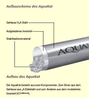 Die Aquakat-Produkte sind zylindrisch oder quaderförmig geformte Kartuschen aus Edelstahl, die an Wasserleitungen angebracht werden sollen, um nach Vorstellungen der Anbieter eine Wirkung auf die Wasserqualität zu entfalten. Unter einer Edelstahlhülle befinden sich aus "informierter" Aluminiumfolie, Leinenpapier und Baumwolle. Nach Angaben von Penergic sind die Aluminiumfolien in einem "Gravitationsfeld" in einem "Implosionsverfahren" mit "Frequenzmustern" von Quellwasser und Sauerstoff "aufgeladen". Zur Wirkung komme dabei ein nicht exakt beschriebener, so genannter "Signalgeber", der auch in diesem Zusammenhang als "Katalysator" bezeichnet wird. Er leite "zuvor modulierte Stoffeigenschaften" und "zuvor aufgeladene Frequenzmuster" an das Wasser weiter. Das vorbeifließende Wasser trete dabei "in Resonanz". Ein "Erinnerungsvermögen" des Wassers verändere dabei die in ihm vorhandenen Wassercluster, so dass es zu einer "Gleichschwingung" mit einem gleichartigen hypothetischen Phänomen des AquaKat komme. Dabei seien dann die Veränderungen vom Kunden als Geschmacksänderung wahrnehmbar, und durch eine Veränderung des so genannten "Molekularverhaltens" erhalte das Wasser "quellwassertypische Eigenschaften", heißt es in der Aquakat-Werbung. Auch komme es im Lebensmittel Wasser zu einer "inneren Reinigung" beim Baden oder Duschen sowie zu einer "natürlichen Härtestabilisierung", zur Kalkablagerungsverminderung und Reinigung der Rohrleitungen.