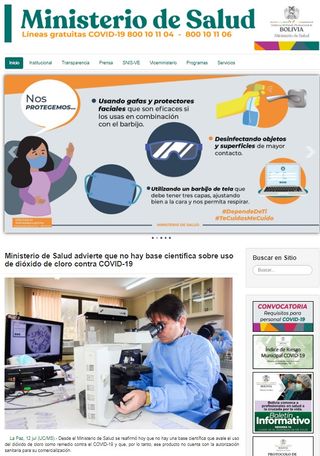 - ↑ https://www.minsalud.gob.bo/4416-covid-19-ministerio-de-salud-alerta-que-el-uso-del-dioxido-de-cloro-ya-provoco-muertes-en-el-pais