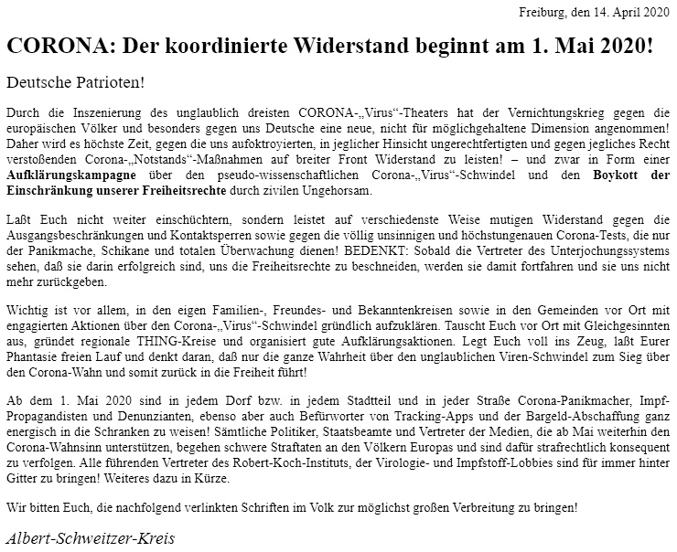 Datei:Albert Schweitzer Kreis Coronavirus-Pandemie Drohung April 2020.jpg