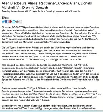 Nach dem Eindringen eines Vril-Parasiten soll es dann zur Besitznahme durch den Parasiten kommen, Droning genannt: