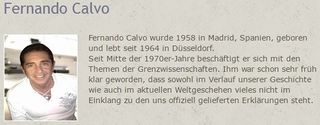 Fernando Calvo (geb. 1958 in Madrid) ist ein Autor, der aktuell in Düsseldorf lebt. Calvo hat sich auf die Weiterverbreitung bereits bekannter gängiger Verschwörungstheorien und unbewiesener Hypothesen aus dem Bereich der Ufologie spezialisiert. Weitere Interessensgebiete betreffen den Neuschwabenland-Mythos, kryptozoologische Themen wie Loveland Frog und weitere analoge Themen (Spekulationen über einen Wüsten-Bigfoot aus Kalifornien alias "Yucca Man" und über einen "Dogman" in New Jersey), das so genannte Brummton-Phänomen oder Klimalüge, über die ohne ausreichende Quellenangaben berichtet wird.