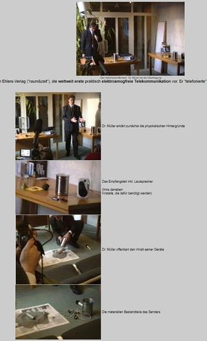 Behauptet wurde dass es dabei am 27. Oktober 2001 zu einem Telefongespräch von St. Petersburg (Russland) nach Bad Tölz gekommen sei. Diese wurde als "weltweit erste Sprachübertragung von St. Petersburg nach Bad Tölz über stehende Gravitationswellen" bezeichnet.