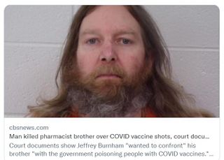 2021 meldete CBS[34], dass Jeffrey Burnham (46) aus Maryland seinen Bruder am 30. September 2021 ermordete, nur weil dieser als impfender Apotheker "etwas wisse" über ein geheimes Tötungsprogramm der US-Regierung durch Coronavirus-Impfungen. Zusammen mit seinem Bruder tötete er auch seine Schwägerin und eine 83 jährige Anwesende.