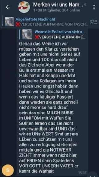 - Die Gegner der Corona-Regeln radikalisierten sich Hand in Hand mit rechten Verschwörungsideologen immer stärker. Und, so warnen Sicherheitskreise, sie schrecken offenbar auch vor schweren Gewaltakten und Anschlägen nicht mehr zurück.[5]