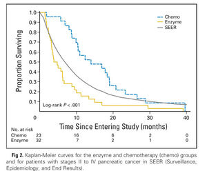 - ↑ John A. Chabot, Wei-Yann Tsai, Robert L. Fine, Chunxia Chen, Carolyn K. Kumah, Karen A. Antman, Victor R. Grann: Pancreatic Proteolytic Enzyme Therapy Compared With Gemcitabine-Based Chemotherapy for the Treatment of Pancreatic Cancer. The Journal of Clinical Oncology, 17. August 2009