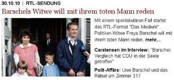 Die RTL-Sendung mit Barschel-Kontakt enttäuschte ihre Macher, da sie mit 16,7% Einschaltquote unter dem Zwölf-Monats-Normalniveau des Senders lag.