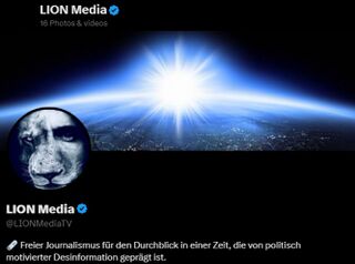 Lion Media (LionMediaNews, LIONMediaNetwork,LION Media TV) ist ein anonym betriebenes Video- und Nachrichtenportal. Lion Media ist spätestens im Herbst 2018 aktiv geworden. Videos und Beiträger erscheinen bei Youtube und Telgram. Ganz offensichtlich wird Lion Media von einer Einzelperson namens Leonard Zirnstein betrieben, die gleichzeitig einer der bedeutendsten deutschsprachigen Influence]]r der QAnon-Szene ist. Dies ergibt sich aus Recherchen des WDR.[1] Als Standort wird Deutschland angegeben. Im Eigenverständnis heisst es: