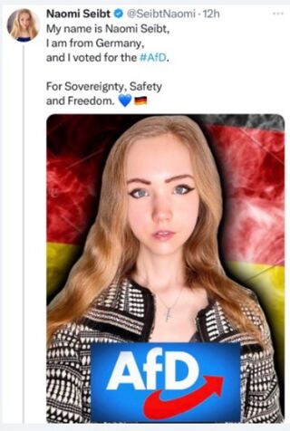 - ↑ https://www.welt.de/politik/ausland/article6901d1c33e11285c65f0cda5/naomi-seibt-afd-influencerin-beantragt-asyl-in-den-usa-mit-unterstuetzung-von-elon-musk.html