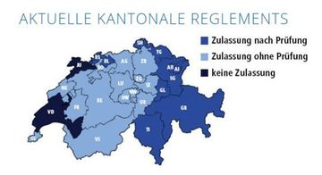 - Naturheilpraktiker in der Schweiz. Je nach Schweizer Kanton ist es in der Schweiz möglich, die Tätigkeit eines Naturheilpraktikers auszuüben. In einigen Kantonen ist die Ausübung der Tätigkeit nicht reglementiert, und es besteht auch keine Meldepflicht (Beispiel Kanton Wallis). In anderen Kantonen (geographisch eher in der Mitte) ist die Ausübung ebenfalls für jedermann möglich, aber es besteht eine Meldepflicht. In anderen Kantonen bestehen Regelungen für die Tätigkeit. In der Westschweiz gibt es einige Kantone, in denen eine Tätigkeit als Naturheilpraktiker grundsätzlich verboten ist. Beliebt ist daher die Praxis mancher Naturheilpraktiker, Kunden aus benachbarten Kantonen ohne Naturheilpraktikerzulassung zur Behandlung anzusprechen. Die Kosten für zugelassene oder ohne Regelung geduldete Naturheilpraktiker werden in der Schweiz von der Grund-Kassenversicherung nicht übernommen. Es gibt jedoch freiwillige Zusatzversicherungen, die recht teuer sein können (siehe auch: Helsana-Studie).