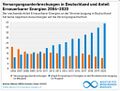 Laut Fraunhofer-Institut für Solare Energiesysteme ISE liegen die Gestehungskosten für Solare Energiesysteme (ISE) bei Photovoltaikanlagen zwischen 3,12 und 11,01 Cent/kWh, bei Windenergie an Land zwischen 3,94 und 8,29 Cent/kWh. Offshore-Windenergie (auf See) kostet zwischen ungefähr 9 bis 12 ct/kWh (Quelle: Fraunhofer Studie 2021). Die Stromgestehungskosten von Solar- und Windenergie-Anlagen liegen heute (2025) unter denen von konventionellen Kraftwerken. Strom aus Atomkraftwerken kostete ca. 13 Cent pro KWh, ohne Berücksichtigung der "Ewigkeitskosten" durch Endlagerung von Atommüll und Kosten des Atomausstiegs (Abrisse). Würde man diese Ewigkeitskosten mit einbeziehen, lägen die „wahren Kosten“ der Kernenergie vermutlich bei knapp 42 ct/KWh (Angabe BUND).