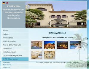 - ↑ Screenshot der Immobilienseite www.video-estates.com vom 9. August 2013, auf der das angebliche REGENERA Haus Marbella als Luxusvilla zum Kauf angeboten wird