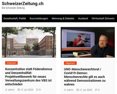 Die SchweizerZeitung ist ein schweizer Nachrichten- und Werbeblog, der in seiner Aufmachung an eine herkömmliche Tageszeitung erinnern soll. Die Betreiber des Blog waren lange Zeit unbekannt und wurden auf den Seiten der SchweizerZeitung nicht genannt. Ein Impressum fehlte. Die Mitglieder der Redaktion wurden nicht genannt, Artikel sind in der Regel mit "admin" gekennzeichnet. Seit Februar 2021 verfügt der Blog über ein Impressum. In diesem wird als Herausgeber der Verein "publizistische Vielfalt" in Wädenswil genannt.[1]