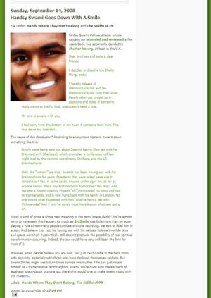 - ↑ http://guruphiliac.blogspot.com/2008/09/handsy-swami-goes-down-with-smile.html
