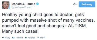 - ↑ http://scienceblogs.com/insolence/2016/11/02/donald-trump-and-disgraced-antivaccine-scientist-andrew-wakefield-best-buds-forever/
