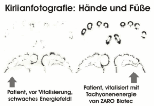 - EnergyBoard und ePad. Platten aus Plastik (Polyamid) in der Größe A4 bzw. in Bierdeckelgröße, die in Lebensmitteln und Getränken "eine molekulare Ordnung durch Übertragung von Tachyonen-Teilchenenergie" schaffen sollen. Die Folge sei ein erhöhtes Wohlbefinden. Außerdem sollen Lebensmittel nach kurzer Lagerung auf den Platten erheblich länger haltbar sein. Fotos sollen belegen, dass Toastbrot, das eine Stunde auf dem EnergyBoard gelegen hat, im Kühlschrank nach 17 Monaten noch nicht verschimmelt sei. Entsprechende Bilder von einer nicht "behandelten" Vergleichsprobe fehlen allerdings.[3]