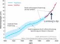 • Einmal, wenn Messdaten aus der Arktis nicht berücksichtigt werden. Dies ist bei einigen aktuellen Datenauswertungen der Fall, da es im Gebiet der Arktis wenig Beobachtungsstationen gibt. In Analysen, bei denen die "weißen Flecken" des Messnetzes interpoliert werden, trifft dies nicht zu.