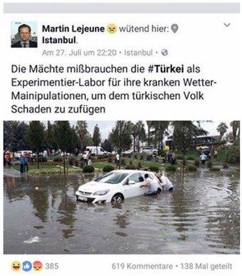 | − | [[image:Martin Lejeune Wetter.jpg|Verbreitung von [[Verschwörungstheorie]] über eine angebliche Wettermanipulation| | + | [[image:Martin Lejeune Wetter.jpg|Verbreitung von [[Verschwörungstheorie]] über eine angebliche Wettermanipulation|340px|thumb]] |