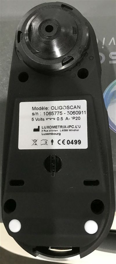 Zum Vergleich: Oligoscan mit dem Luxemburger Vertrieb Luxometrix SA[29] beschreibt die technischen Eigenschaften des Oligoscan-Sanners. Demnach wiegt der Scanner wie bei X-Rite genau 245 Gramm und die Abmessungen sind ebenfalls gleich. Auch wird der Oligoscan wie der X-Rite Scanner über USB mit Strom versorgt und übermittelt die Daten auch darüber. In der Oligoscan-Beschreibung heisst es:
