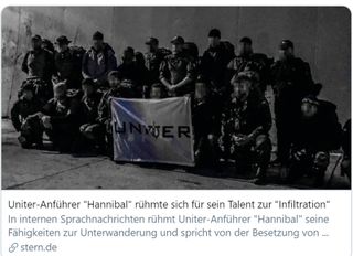 [[image:Uniter Hannibal Stern 2020.jpg|Bericht der Wochenzeitschrift Stern über Verein [https://de.wikipedia.org/wiki/Uniter Uniter] und das rechtsextreme [https://de.wikipedia.org/wiki/Hannibal_(Netzwerk) Hannibal-Netzwerk]|320px|thumb]] | [[image:Uniter Hannibal Stern 2020.jpg|Bericht der Wochenzeitschrift Stern über Verein [https://de.wikipedia.org/wiki/Uniter Uniter] und das rechtsextreme [https://de.wikipedia.org/wiki/Hannibal_(Netzwerk) Hannibal-Netzwerk]|320px|thumb]] | ||
