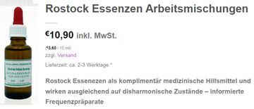 Rostock-Essenzen werden auch von verschiedenen Apotheken in Österreich und Deutschland angeboten und von einigen Heilpraktikern eingesetzt.