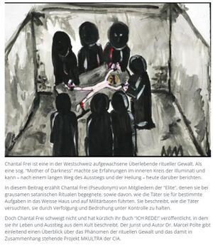 Chantal Frei möchte dazu beitragen, Licht in diese Finsternis zu bringen. - ↑ https://blog.gwup.net/2024/04/18/rituelle-gewalt-mind-control-eine-verschwoerungstheorie-mit-gefahren-fuer-die-gesellschaft-und-hilfesuchende-patienten/