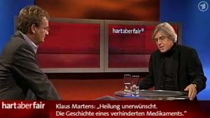 - Mittwoch 21. Oktober 2009: Fernsehsendung hart aber fair. Moderator Plasberg lädt Martens zur Show ein, erste spontane Zweifel an der Regividerm-Story durch Gast Beda Stadler