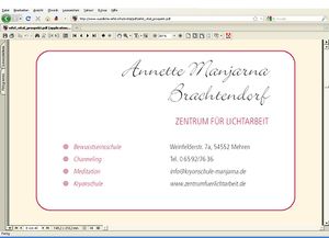 - ↑ Zentrum für Lichtarbeit, Annette Manjarna Brachtendorf, Weinfelder Str. 7a, 54552 Mehren