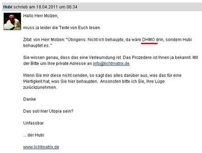 | + | [[image:Hubi.jpg|Erfinder "Hubi" bestreitet die Anwesenheit von Wasser (als DHMO, Dihydrogenmonoxid oder Hydrogenhydroxid oder Hydroxylsäure) in seinem Produkt|400px|thumb]] | ||