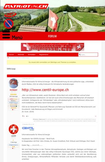 ..Wir sind freie Forscher in den Themen Atmosphärenphysik, Astrophysik, Geologie und Biologie und verurteilen Behauptungen über das völlig irrelevante Spurengas CO2, welche aus reiner Ideologie, Unwissenheit, oder aus widerwärtigen politischen Zielen verteufelt wird und der Bevölkerung Armut, Enteignungen, Wirtschaftliche Milliarden Verluste und damit Wohlstandsvernichtung aufs schärfste! (Zitat von patriot[.]ch, 2019)