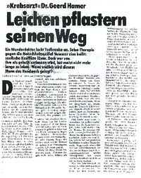 *''"Wenn da wirklich 100 bei mir gestorben wären, die vorher schulmedizinisch vorbehandelt waren, das wäre gar nix."'' (Ryke Geerd Hamer im Interview BR [ARD] 2010) | *''"Wenn da wirklich 100 bei mir gestorben wären, die vorher schulmedizinisch vorbehandelt waren, das wäre gar nix."'' (Ryke Geerd Hamer im Interview BR [ARD] 2010) | ||