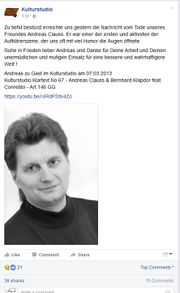 | 15:05, 24. Sep. 2016 | Nachruf Andreas Clauss Kulturstudio.jpg (Datei) | 121 KB | Abrax | 1 | ||