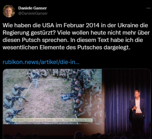 - (Herunterladen) Daniele Ganser Ukraine Fake-News Rubikon.jpg . . 600 × 549 . . 103 KB . . Fulgor . . 14:04, 18. Nov. 2022