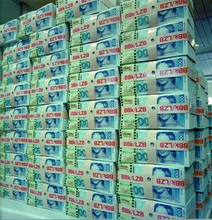 Auf einer amerikanischen Internetseite, die sich auf Verschwörungstheorien spezialisiert hat, wurden verfälschte Bilder von großen Stapeln angeblich neuer D-Mark-Scheine in einer Halle gezeigt. Die Auflösung war miserabel, was sich mit einem Blick auf die Bild-Originale erklären lässt. Die finden sich auf der Homepage der Bundesbank, im Bildarchiv für die Presse. Unter dem Stichwort "sicheres Bargeld" ist dort das gleiche Bild aus dem Jahr 1991 abrufbar. Die gute Auflösung dort zeigt die Banderolen der Scheine mit einem Aufdruck vom 25. Oktober 1990.