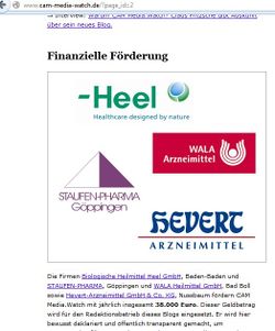 - https://blasphemieblog2.wordpress.com/2012/07/02/homoopathiehersteller-sponsorn-netz-pranger-fur-kritiker/