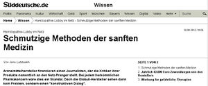 - ↑ Jens Lubbadeh: "Homöopathie-Lobby im Netz - Schmutzige Methoden der sanften Medizin", Süddeutsche Zeitung, 30.06.2012