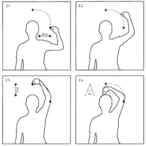 1. 1,0 1,1 DE 102008032526 A1: Verfahren zum Auffinden eines Stimulationsareals. Anmeldedatum: 10.07.2008. Die vorliegende Erfindung betrifft ein Verfahren zum Auffinden mindestens eine Stimulationsareals am Kopf einer Person, gekennzeichnet durch die folgenden Schritte: a) aktives Anheben der linken Hand der Person auf Höhe ihres linken Auges, wobei ein Abstand zwischen einschließlich 15 cm und einschließlich 45 cm zu ihrer linken Schläfe eingehalten wird, und zeitgleiches aktives Zusammendrücken von Daumen, Zeige- und Mittelfinger ihrer linken Hand, b) aktives Hochführen der linken Hand der Person über den Mittelpunkt ihres Kopfes, wobei der Abstand zwischen einschließlich 15 cm und einschließlich 45 cm zum Kopf in der Bewegung beibehalten wird, c) aktives Hinführen von Daumen, Zeige-und Mittelfinger der linken Hand zur Kopfhaut im Bereich des Mittelpunkts des Kopfes der Person in einem Winkel zwischen einschließlich 0° und einschließlich 20°, d) aktives Abtasten des in Schritt c) erreichten Kopfbereichs der Person mit Daumen, Zeige- und Mittelfinger der linken Hand, e) Festlegung von mindestens einem Stimulationsareal mit zum übrigen Kopf abweichender Kopfhaut und/oder Knochenbeschaffenheit.