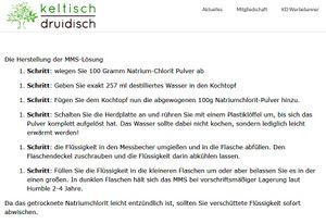Auf den Webseiten seiner "keltisch-druidischen Glaubengemeinschaft" (KDG) verbreitet Ernst Anleitungen zur Selbstherstellung des Scharlataneriemittels MMS.