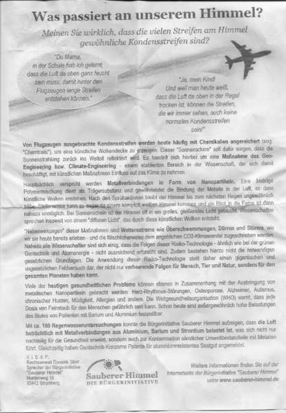 Version vom 14. August 2015, 21:47 Uhr von 12x98 (Diskussion | Beiträge) (Plakat/Flyer von Dominik Storrs "Bürgerinitiative sauberer Himmel")