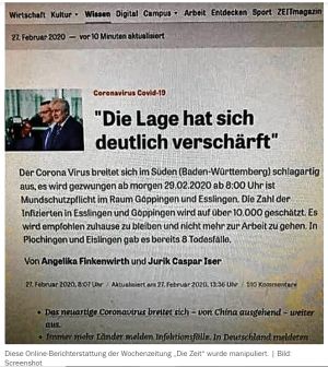- angebliche Panikmache vor dem eigentlich harmlosen Virus, um die Errichtung einer Diktatur nach chinesischem Vorbild zu rechtfertigen (Hans Tolzin)