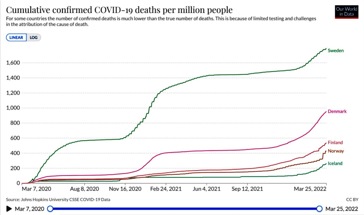 Datei:Vergleich COVID-19 Verstorbene Schweden Nordeuropa Maerz 2022.jpg