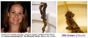Eine international auftretende undurchsichtige Firma namens DrNatura bietet in verschiedenen Sprachen im Internet diverse Produkte mit gesundheitsbezogener Werbung und gesetzlich verboteten Kundenreaktionen an, die einer so genannten Darmreinigung dienen sollen. Offenbar handelt es sich dabei nicht um Arzneimittel, sondern um Lebensmittel. DrNatura versucht Profit aus Befürchtungen von Darmhypochondern und leichtgläubigen Laien um eine unregelmässige Verdauungstätigkeit, Reizdarmsymptomen, möglichen Darmparasiten und Darmkrebs zu erlangen, und verbreitet dazu laienhafte Horrormeldungen und schockierend aussehende Bilder. Ziel ist es die eigene teure Produktlinie zu verkaufen. Dazu sollen auch unüberprüfbare Anekdoten angeblicher ausschliesslich glücklicher Kunden sowie von Alternativmedizinern eines obskuren Global College of Natural Medicine dienen. Eine lange Liste von Zuständen, Symptomen und Krankheiten werden unbelegt pauschal einer fehlenden Darmreinigung im Sinne der Firma unterstellt. Dazu werden beispielsweise Übergewicht, „Hautprobleme“ und Haarprobleme, Kopfschmerzen, Nahrungsmittelallergien, Mundgeruch, hervorstehender Bauch, ständige Abgeschlagenheit und medizinisch unbekannte Beutelentzündungen gezählt. Als Ursacher derartiger Zustände unterstellt DrNaturs das düstere Geheimnis von medizinisch unbekannten langen Kotstücken, die mit Giftstoffen angefüllt seien und die an der Innenwand dess Dickdarms kleben sollen. Eine Vegetarian Times hätte im März 1998 dazu passend geschrieben, dasss angeblich Leichenbeschauer bei Obduktionen herusgefunden hätten, dass der Dickdarm zu 80% von Schlackestoffen verschlossen sei, und daher der Leitspruch Der Tod fängt im Dickdarm an gültig sei. Ursache seien ungenannte Gifte zu Hause, am Arbeitsplatz, in der Luft, im Trinkwasser und in Präparaten der pharmazeutischen Industrie, die der menschliche Körper angeblich nicht neutralisieren könne. Hinzu kämen schädliche Süßigkeiten und künstlich hergestellte Lebensmittel, Aufputsch- und Beruhigungsmittel. Folge wären die genannten länglichen Kotsteine, aber auch nicht näher beschriebene Verunreinigungsgebilde im Gehirn oder in der Leber. Hinzu sollen Parasiten-Schmarotzer (genannt als Körperfresser oder Body Snatcher) im Darm kommen, die angeblich zunehmen würden und bei denen die Gefahr bestünden, dass sie uns kontrollieren könnten. Hier ergibt sich offenbar ein Anknüpfungspunkt um unbewiesene Horror-Hypothesen um "fleischfressende Bakterien". Obwohl die genannten Szenarien an der ständig steigenden Lebenserwartung in Industriestaaten nicht erkennbar sind, sollen die ursprünglich für amerikanische Kunden zugeschnittene DrNatura-Produkte wie "Colonix", "Toxinout", "KleriTea" und ein "antiparasitärer Ernährungszusatz Paranil" (mit Inhaltsstoffen des Schwarznussbaums Juglans nigra, Fenchel, Salbei, Farnkraut Wurzel und Pau D'Arco) dem abhelfen und zu einer Reinigung und Entschlackung führen, ohne dass praktischerweise die Ernährung oder Lebensgewohnheiten der Kunden verändert werden müssten. Dazu sollen eine "Heilkräuterdiät", Aminosäuren, Mineralstoffe oder die Zufuhr "positiver Darmbakterien" geeignet sein, um Darmwürmer und deren Eier zu vernichten. Zugleich würden Schwermetalle sowie andere "Giftstoffe" ausgeleitet und eine Aufladung des Immunsystems durch Antioxidantien erfolgen. Als vermeintliches Wirkprinzip wird ausgeführt, dass Fasern von Heilkräuter alles herausfegen würden, was während der Jahre hängen geblieben ist, wie zum Beispiel giftige Ablagerungen und Parasiten. Warum eine ballaststoffreiche Nahrung dazu nicht geeignet wäre, ist nicht zu erfahren.
