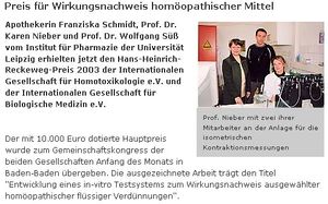 - ↑ Forum Antihomotoxische Medizin e.V., Bahnackerstr. 16, 76532 Baden-Baden. Tel.: (07221) 67333
