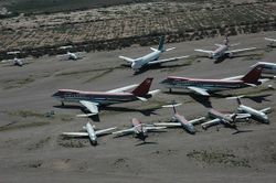 Das Bild war jedoch eine einfache Fälschung eines im Internet öffentlich zu findenden copyright-geschützten Bildes.[29] Ein im Freigeistforum als fighthamster angemeldeter User hatte nach eigenem Bekenntnis einfach falsche Beschriftungen in zwei Bilder eingefügt, die einen Passagierjet des Typs Boeing 777 zeigten, der zu Zwecken der Zulassung mit Messgeräten und wasserhaltigen Behältern als Ballast ausgerüstet war. Der völlig unkritische und leichtgläubige Platte war blamiert, denn er hatte noch nicht einmal die völlig normalen Bullaugen auf dem Bild wahrgenommen. Auf den Webseiten der ENR wird die wirre Spinnerei um das gefälschte Bild kräftig weiter ausgebaut: Die im Bild gezeigten Ballastfässer (in Wirklichkeit tatsächliche umgebaute Bierfässer) sollen laut united-mutations Tanks sein, die vom Hersteller versiegelt würden und zwar unter Aufsicht von UNO-Inspektoren. An einem als geheim bezeichneten Ort namens Pinal Airpark (Arizona) würden unter CIA-Aufsicht Flugzeuge zu Chemtrail-Sprayern umgebaut werden, die dann ab November 1998 weltweit eingesetzt worden wären, mit der einzigen merkwürdigen Ausnahme von China. Quelle des erheiternden Geschwurbels sei der Vietnamveterane Tim White. Ein Ted Twietmeyer (tedtw@frontiernet.net) hatte bei rense.com Ähnliches behauptet, aber das gefälschte Bild wenigstens als Fake erkannt. Der Pinal Airpark ist ein Flugplatz (ICAO Kennung KMZJ, nach IATA: MZJ) in Arizona, der im Vietnamkrieg von der CIA genutzt wurde, und jetzt als Abstellplatz für ausrangierte Flugzeuge genutzt wird, ein Flugzeugfriedhof. Die meisten der dortigen Flugzeuge stammen von der Northwest Airlines.[30]