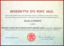 Il serait aussi membre de l'ordre de St Grégoire le Grand "Magna cruce ordinis sancti gregorii magni".