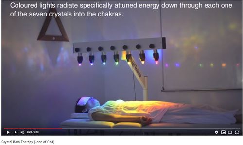 - Certaines personnes reçoivent le consentement des entités pour acheter un lit de cristal dans la Casa de Dom Inacio et pour offrir des séances appropriées dans leur pays d'origine (...) Pendant ces traitements, on est couché sur un lit et les chakras sont purifiés et énergitisés par sept lampes qui brillent dans diverses couleurs au travers de cristaux taillés appropriés.