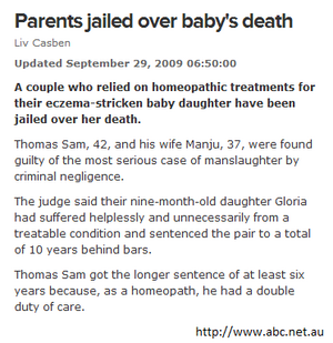 - ↑ http://www.abc.net.au/news/2009-09-28/parents-jailed-over-babys-death/1445256